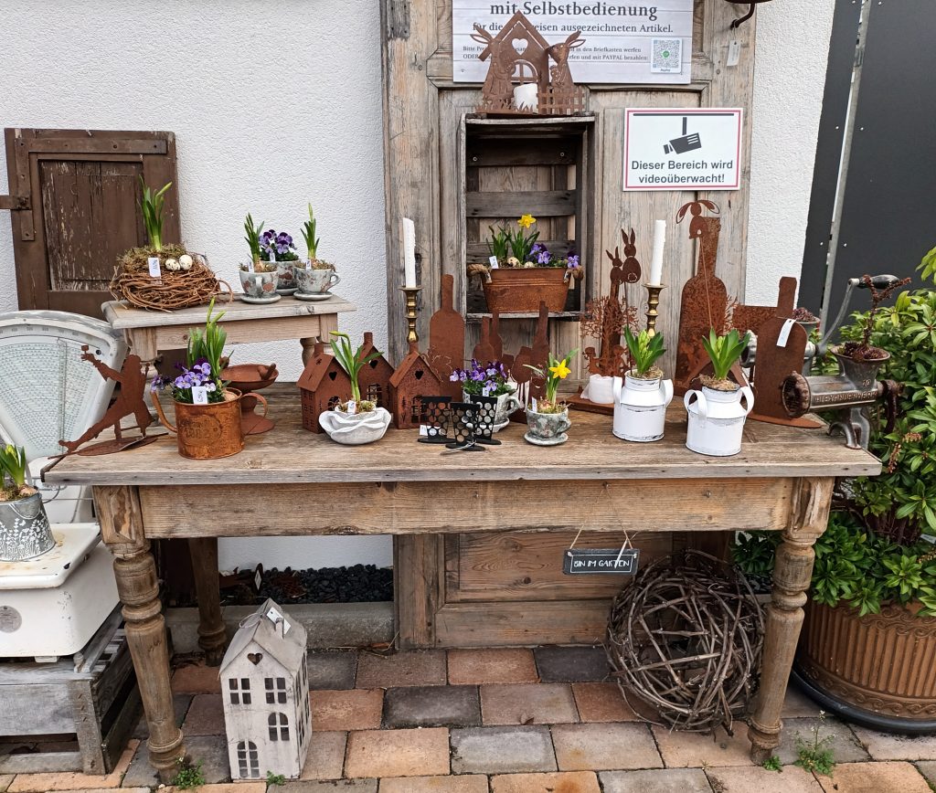 Der Frühling ist im Geschenkehofladen eingezogen Tomaten und Kräuter können ab jetzt auch wieder bestellt werden Einblick in die Kreativwerkstatt Einige Werkstücke Stand: 20.03.2026